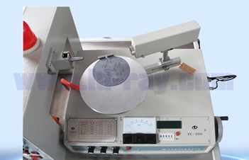 Designed according to measurement crystal round plate and crystal bar, installs with bearing rail on sample table, this model of instrument can measures 30kg, ¢2-6 inch(can up to 8inch) diameter crystal round plate and crystal bar; On sample table, there is a vacuum gas-absorbing device which can measures angle of crystal round plate silicon(111) sapphire A,C,R and other crystal materials. At the same time it can also measures angle of crystal bar’s reference surface or OF surface (110) A.